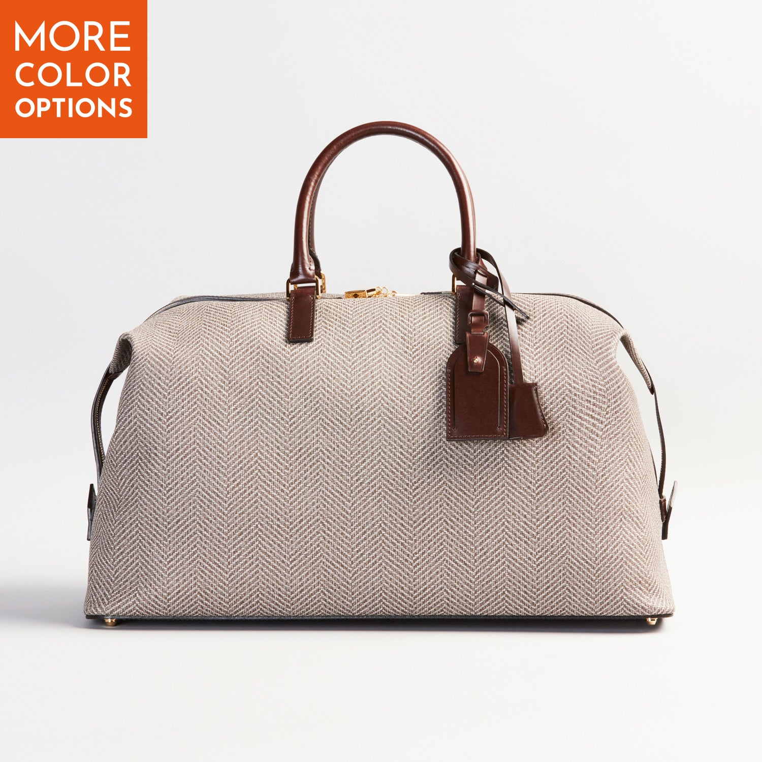 スポーティなデザインが多いボストンバッグの中でも、ヘリンボーン柄がシックで落ち着いた印象。今回の《カラー受注会》では、定番商品と違いハンドルや底板などに、発色の良さが特徴の、「サンタクローチェ®カーフ」を贅沢にあしらい、まさに大人の休日に相応しいラグジュアリーな雰囲気を纏った旅行鞄にお仕立ていたします。