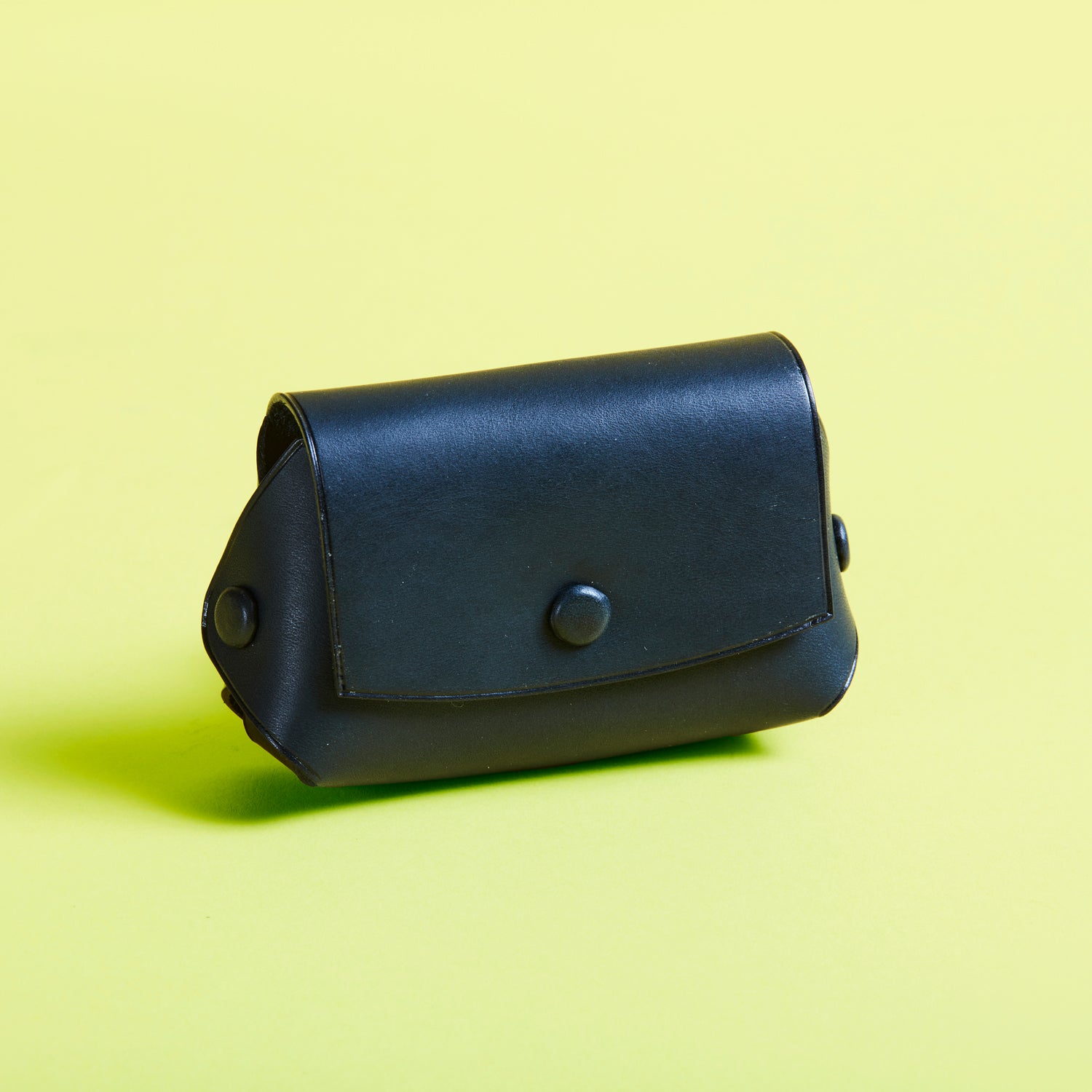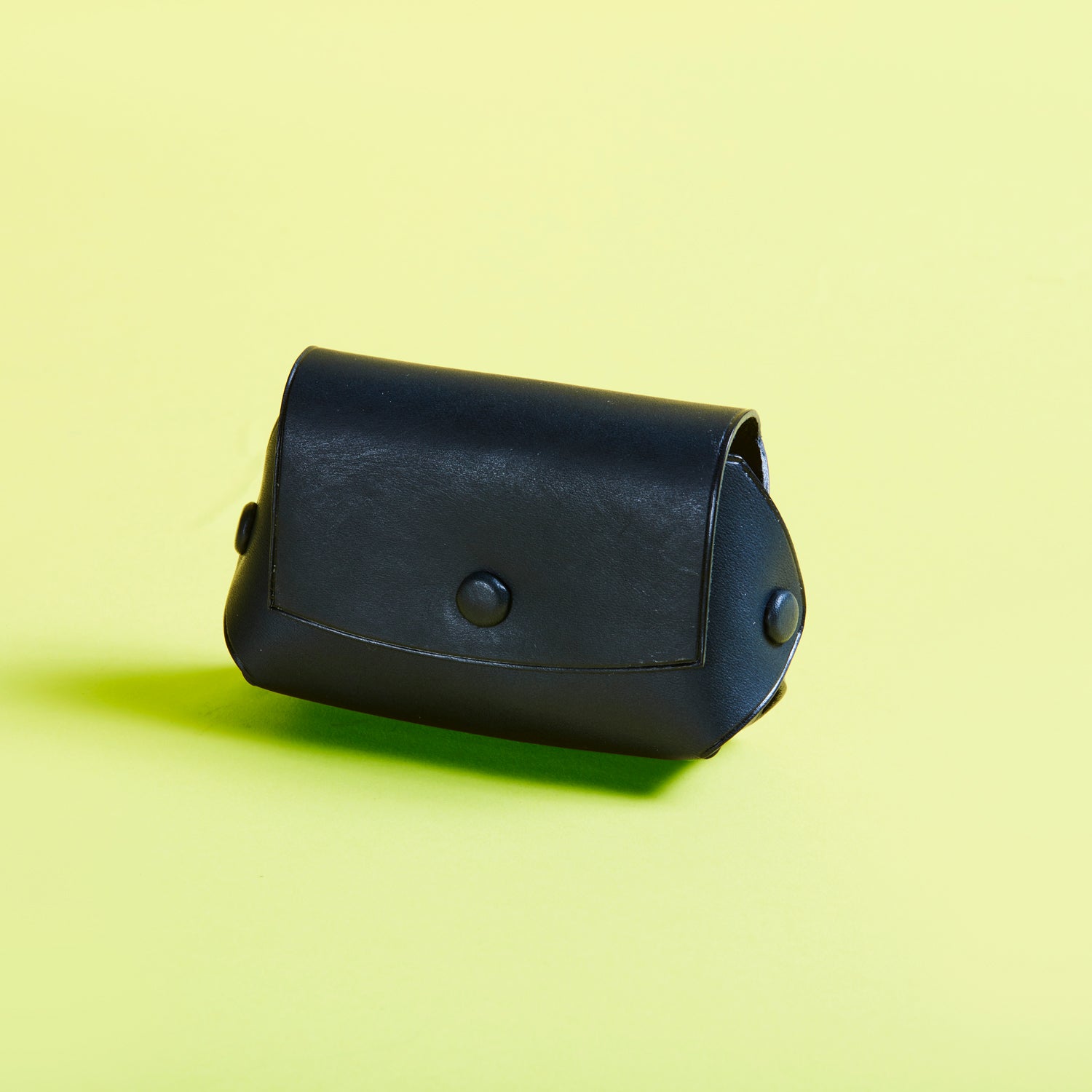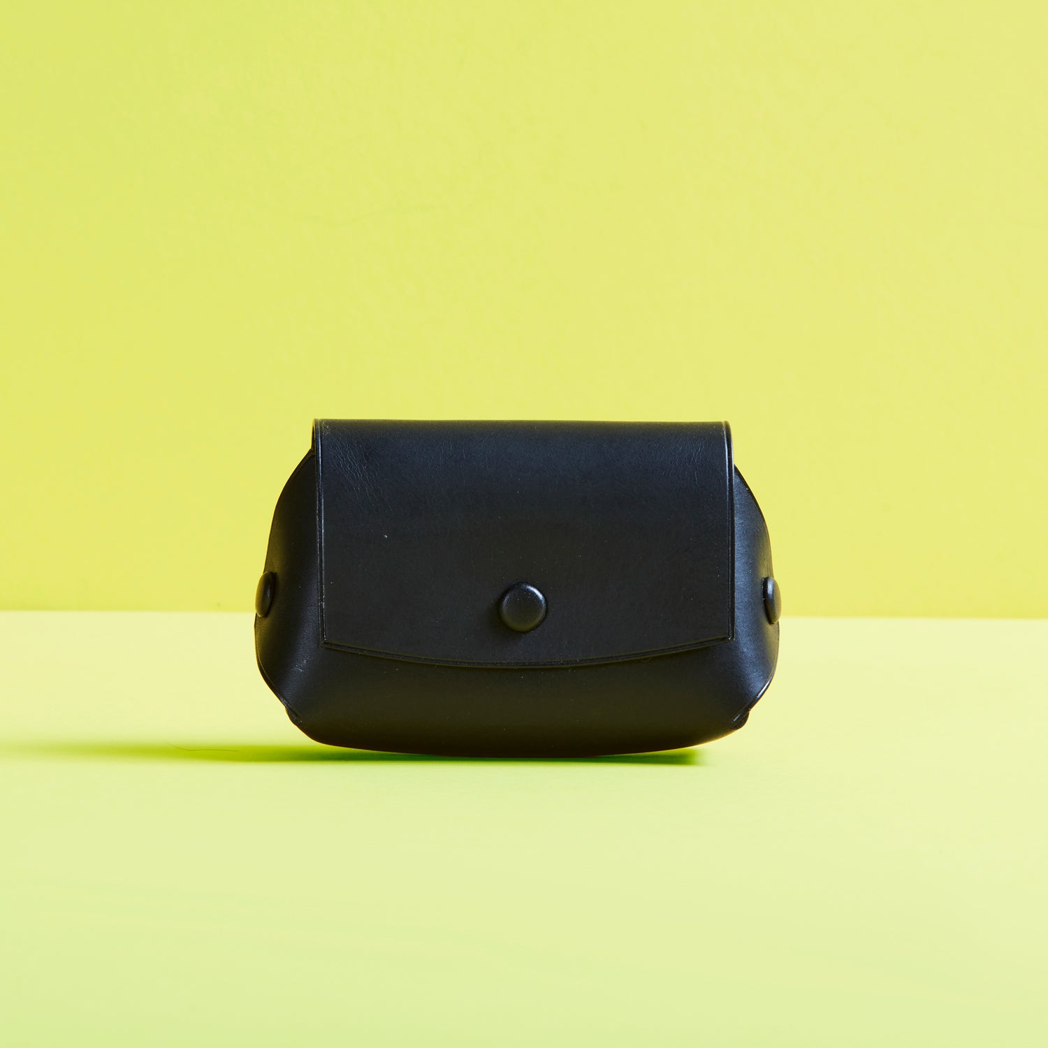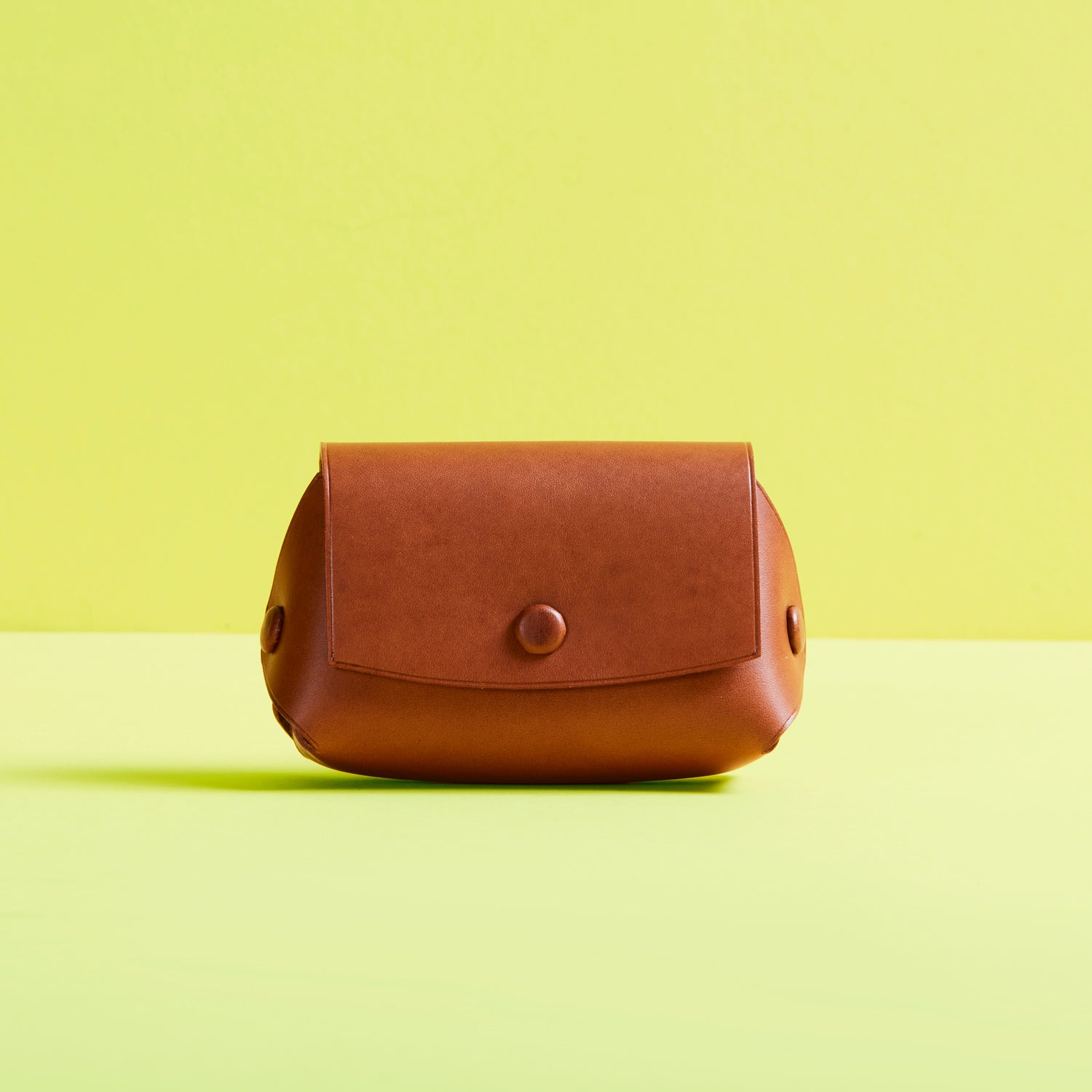 柔らかな曲線を描くフラップと、中央にあしらわれたワンポイントのボタン。ミニマルなデザインの中に、どこか愛嬌のある表情が宿ります。